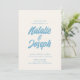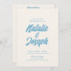 Den här bröllopsinbjudan är perfekt för bröllop om du tittar för en unik och enkel redigerbar utformning. En elegant unik enkel, minimalistisk dubbla av gräddblått bröllop som alla står på samma sida i en bröllopsinbjudan. Vilket har en vit bakgrund. Och blå fet groovy 70-talets brud- och brudgumms första namn. och redigerbar information. Och på baksidan finns har hela bröllop som hotell, mottagning, OSA och bröllop webbplats. Prisvärd och det är också digital elektronisk e-inbjudan om du vill skicka den med text eller e-post. All information är anpassade genom att klicka på knappen för anpassning. Ta det och gör det till ditt så att du gör inbjudan förlovad och upphetsat.