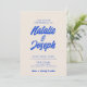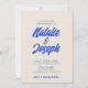 Den här bröllopsinbjudan är perfekt för bröllop om du tittar för en unik och enkel redigerbar design. En elegant unik enkel, minimalistisk gräddblått bröllop-mallinbjudan. Vilket har en vit bakgrund. Och blå fet groovy 70-talets brud- och brudgumms första namn. och redigerbar information. Prisvärd och det är också digital elektronisk e-inbjudan om du vill skicka den med text eller e-post. All information är anpassade genom att klicka på knappen för anpassning. Ta det och gör det till ditt så att du gör inbjudan förlovad och upphetsat.