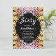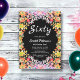 Den här elegantens blommigt födelsedag är perfekt för en modern sommarfödelsedag. Den romantiska utformningen har en färgstark vattenfärgad blommigt med vit elegant på svart bakgrund.