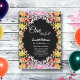 Den här elegantens blommigt födelsedag är perfekt för en modern sommarfödelsedag. Den romantiska utformningen har en färgstark vattenfärgad blommigt med vit elegant på svart bakgrund.