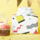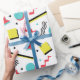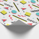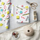 Retro-omslutning papper med en roligt mönster med former i olika färg inspirerade av trendigets 90-talsetik.