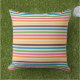Utomhuskudde för var och en som i kärlek är ljusa och festliga, har vågrät rand av blått, rosa, orange, vitt, gult, grönt.