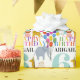 Den här färgstarka och skarpa födelsedagskalans pappra funktioner regnbågstext som lyder "grattis på födelsedagen!" följt av en personlig namn och ett stort blått nummer för födelsedagskalan barn ny ålder. Afrikanska djur från redot i party, en elefant, giraff och lejona är alla redon att fira med tårta, ballonger och party hattar.