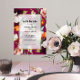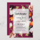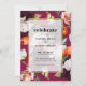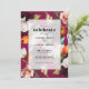 En vacker bröllopsinbjudan med anpassadet bröllop firande har nymodig ro, ranunculus, dahlias, snapdrakar och begonias i burgundi, orange, vitt och rosa färg, som visas mot en magenta bakgrund. Blomsterspråket, som kallas floriografi, ger olika betydelser för olika typer och färg av blommor. Ro representerar till exempel kärlek, begonias symboliserar harmoni, dahlias betyder engagemang, ranunculus representerar charm och ögonblicksbilder betyder nåd.