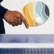 Abstrakt retro stil: färgstark illustration (gult, blått, orange, marinblått, senap, turkos) vinkar dekoration på vit bakgrund