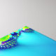Abstrakt fractal konst i fetstil och pulserande blått, cyan, grönt och lila.