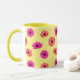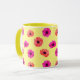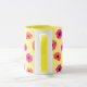 Mugg har en vacker och söt, ljusstark, tropisk, färgstark shock rosa i orange vår blommor 3D stil mönster på gultens bakgrund. Det är ett vackert och sött trendig för en födelsedag, årsdag eller någon enstaka unik gåva till kvinnor och flickor som tycker om färgfulla 3D stil-blommor. Mugg gör en minnesvärd gåva till någon speciell.