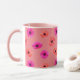 Mugg har en vacker och söt, ljusstark, tropiska, färgstark rosa i orange vår blommor 3D stil mönster på rosa. Det är ett vackert och sött trendig för en födelsedag, årsdag eller någon enstaka unik gåva till kvinnor och flickor som tycker om färgfulla 3D stil-blommor. Mugg gör en minnesvärd gåva till någon speciell.