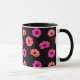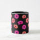 Mugg har en vacker och söt, ljusstark, tropisk, färgstark rosa i vår blommor 3D stil mönster på svart bakgrund. Det är ett vackert och sött trendig för en födelsedag, årsdag eller någon enstaka unik gåva till kvinnor och flickor som tycker om färgfulla 3D stil-blommor. Mugg gör en minnesvärd gåva till någon speciell.
