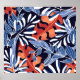Abstrakt skarp mönster med färgstarka tropiska löv och växter på blå bakgrund. Vintagens utformning. Jungle-utskrift. Blommigtens bakgrund. Tryckning och textilier. Exotiska tropikar. Färsk design. Exotiska tropikar: vibrerande löv på blå bakgrundsbelysning. Tropisk glädje: Färgfull exotisk Löv Adorn Vintage decor. abstrakt, mönster, vacker, blommigt, djungel, sommar, löv, blomma, tropisk, bakgrund, illustration, struktur, dekoration, papper, mode, natur, vår, tro, trädgård, sömlös