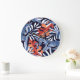 Färgfull Tropical Löv Blue Background Stor Klocka