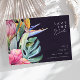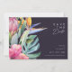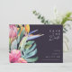 Denna färgstarka tropiska blommigt | lila vågrät spara datum är perfekt för ditt moderna boho-mål, grönt, lila, persiko-bröllop. Konstruktionen har en elegant av klassisk strandfärgsmörjning och blommor som kan omfatta seage-grönt eucalyptus, mauve- och rödprotea, rosa hibiscus, orange och blå fågel från paradiset och mörk grönt handflatan löv. Utformningen är perfekt för ett enkelt, kreativ, unikt resande bröllop för vår, sommar, fall eller vinter! Sök efter andra matchande eller samordnande bröllop-stationer i resten av samlingen.