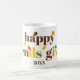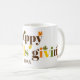 Färgfull fet typografi Lycklig Friendsgiving faller färg Thanksgiving mugg. Gratulera till Friendsgiving tillfälle med detta pulserande och öga-fångstande kaffe mugg. Mugg har en färgstark och fetstilt typografi med texten "Lycklig Friendsgiving". Den är försedd med datum för anpassadet och löv i varma autokron av brunt, orange, oliv grönt och gult. Det här mugg är perfekt för att du ska kunna hitta dina favoritdrycker och få lite fräckhet på din Thanksgiving firande