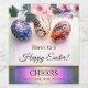 En festlig konstnärlig vin-etikett med Påskägg, vår blommar och ett nätt textbakgrundsområde.