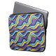 Färgfull vinkar laptop sleeve med mönster med sömlöst trög funky abstrakt vågar i gult, blått och lila färg. Den här roligtens trippelgeometriska utformning ritas i ett modernt stil.