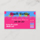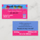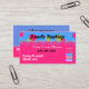 Vitmiskt affärskort, i blått, grönt och shock rosa, med grafik av polka dots, blommor och födelsedagskalas. Anpassa texten till fält för dina affärsbehov.