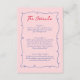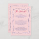 Det här vackra kortet för djurutrymme är designat för att visa detaljerna kring nyckel i bröllop. Det vismliga vågigt gräns, som är handritat och sprucket med färg, ger en aning spelfasthet och charm till utformningen. Det handskrivna skriptteckensnittet ger kortet en personlig och intim känsla, så att dina gäster känner sig delaktiga i din speciella dag. Den pulserande och ljusa färger är perfekt anpassad till det glädjande tillfälle, och kommer att förmedla den upprördhet och roligt som ni känner när ni förbereder er för att binda knaren.