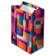 En presentpåse med färgstark bakgrund i abstrakten. Fetstigt och spännande färg - rosa, blått, orange med mera.