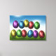 Modern färgstark illustration av Påsk med Påskägg av metallisk stil-folie med inslagen färgad med "Glad påsk"-bokstäver på bakgrunden av vår himlar.