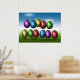 Modern färgstark illustration av Påsk med Påskägg av metallisk stil-folie med inslagen färgad med "Glad påsk"-bokstäver på bakgrunden av vår himlar.