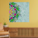 Färgfulla återblommor och snurrar i en halv cirkel. Ljusblå tonbakgrund, gröntens rosa och gula blommor. Anpassningsbar och monogram på baksidan som tillval.