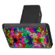 Stampad med färgstark bild av böjda trianglar eller färgad. I olika vibrerande färg, gult, kalkgrönt, rödaktig orange, ljusblått, rosa, lilak, rödbrun eller mörk brun.. med tonförändringar som kan orsaka kurvor eller vinkarare och viss luminiscens i vissa spår.