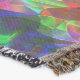 Stampad med färgstark bild av böjda trianglar eller färgad. I olika vibrerande färg, gult, kalkgrönt, rödaktig orange, ljusblått, rosa, lilak, rödbrun eller mörk brun.. med tonförändringar som kan orsaka kurvor eller vinkarare och viss luminiscens i vissa spår.