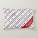 Detta är en kudde av särskilt söt personlig, med små röda, blå och guld-hjärtan och rand i ett diagonalt mönster. En passande ljusröd banderoll som är placerad i guld håller namn eller annan vit text på framsidan. Baksidan av kudden har samma valentin rand mönster, men utan banderoll eller namn. En unik och attraktiv presentidé!