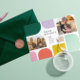 Fet färg och tro mönster gör så att det här familjekortet för helgdag dyker upp! Ett färgstarkt, ljust och unikt kort med typiska julklappar. Utrymme till många-familjfoton.