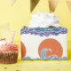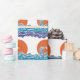 Färgfullt vågar med vacker solnedgång på papper inslagning. Underbar för firande eller party på stranden.
