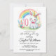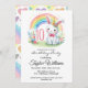En söt design med färgstark regnbåge och Party Bunny! Du kan anpassa den här inbjudan med dina egna uppgifter. En söt charmig design!