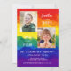 Ytfödelsedagsinbjudningar med färgstark regnbågsbakgrund, med vibrerande typografi och två foton efter eget val.