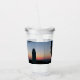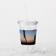 Färgfullt tropiskt solnedfall på ett take away mugg