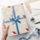 Färgfulla Kites i Himmel Pastel Beige Kids Wrapping Papper. Utformning av sladdar med tre drakar i rött, gult och orange färg. Kiterna flyger i himmel mellan molnen.