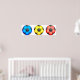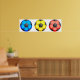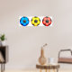 Illustration av en blå, gult och röd fotboll som står i rad.