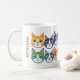 Den här charmerande designen har sex pulserande katt-ansikte i två rader. Varje katt har ett särskilt färg-system och en särskild personlighet, vilket skapar en lekfull och mångsidig utformning av kattdjuret. Katterna återges på ett sött, stiliserat sätt med fet färg och enkla former. Deras uttryckliga ögon och glada leenden ge är en fantastisk kvalitet som kattälskare kommer att värja sig vid. Underbar för kattentusiastens samling eller för att göra ett barns rum ljusare. Anpassa med namn.