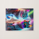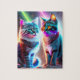 Två katter med färglöst, fint, sött cyberpunk med Neon Ljus Rainbow Färg i en Fantasy World Sci-fi Stil Futuristiska Digital Painting 3D Stil Colorful Cats Poster För barn, Cats Puzzle.