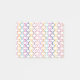 Det här anteckningsblocket har en konsthändelse av orange, turkos, rosa, blått, lila och gult halvcirklar som förbinder med linjer på en vit fält.