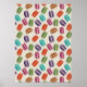 En poster med ett sött mönster av makaroner i många olika färg med en svag polka punkt mönster bakom.