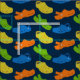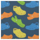 Lägg din bästa fot framåt när du kör nästa syningsprojekt med den här roligten mönstrade väven. De typiska egenskaperna hos plastmockasskor i gult, kalkgrönt, orange och blått mot en marin blå bakgrund skapar den perfekten för alla som föredrar en nedlagd avslappnad.