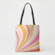 Färgfulla reflexbilder av abstrakten med vågigt rosa, lila, brun, beige, gult och orange vågigt sol-strålar på bakgrunden.