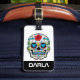 Färgfyllda Röd ros och blå diamanter i Skull Bagagebricka