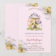 Färgsvampar, guld ro och blommor på polka dots. Dessa inbjudningar till babyduschen är lätta att anpassa för din händelse genom att helt enkelt lägga till din information.