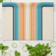 Bilden Retro stil med färgstark (gult, blått, orange, marinblått, beige, turkos) ger dekoration på beige bakgrund. Du kan lägga till ditt namn/monogram för att anpassa objektet.