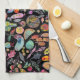 Färgfyllda vita vattenfärgsfrukter Veggies Black Kökshandduk