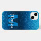 Sapphire blå metallfaux glitter-gnistor i ett ombre mönster från ljus till mörk till ljus igen. Uppdatera texten till ett första monogram och ett namn. Finns i många andra glatta färg och formgivningar.