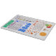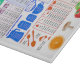 Omräkningsschema över stora färgstarka skärande glasskärskivor, med grafik av en orange, ett champinjon och färgfulla klockpeppar längs grund. Underbar presentidé för vilken kock som helst.