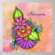 Dekorera ditt rum eller vilket personligt utrymme du vill med detta fantastiska, färgstarka Doodle Flower Bundle Poster. Färgfull Doodle Flower Bundle är en charmerande samling av tre stora blommor i rosa, korall och lila, som är upplagt ovanpå den andra och omges av små blommor och löv från stil och grönt i periwinkle färg daisy. På vardera sidan av bunten är tealpetaler omgivna av accenterande gult och vita prickar. Den övergripande utformningen skisseras i många i linjer till ge och skissas upp på ett mer handgripligt sätt. Blombunten är övertäckt av kollage bakgrund som sammanställts av färg i nyp, gulter och koraller. I stänk i färg finns många-pattrar och former. Du kan anpassa den här bilden genom att lägga till ditt namn eller valfri text.
