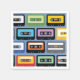 Illustrerad mönster av olika färgstarka kassettband.