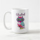 Färgstark Ornate Blommigt Uggla Anpassade Namn Mugg Adsible illustration of a colorful quirky uggla with blommönster as a body. Färg i denna utformning är magenta, chartreuse, turkos, lila och vitt.